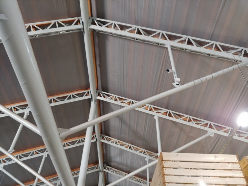 Все оборудование размещается в телекоммуникационном шкафу и запитано от блока бесперебойного питания. Внутри производственного цеха камеры крепятся к несущим фермам на большой высоте и обеспечивают прекрасный обзор.⠀